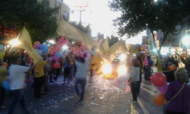 Simpatizantes de Cambiemos salieron a festejar el triunfo de Mauricio Macri (Cambiemos) en el centro de la ciudad. Pasadas las 19, cuando se conocieron los primeros datos oficiales, el centro de tiñó de amarillo. Dirigentes como Marcelo Cuevas, concejal del PRO; Daniel Velázquez, presidente de la UCR circuito local y el legislador Carlos Felpeto. Los datos en Punilla dan una amplia victoria para el ahora presidente. En nuestra ciudad, Macri ganó por el 80% de los votos. |
