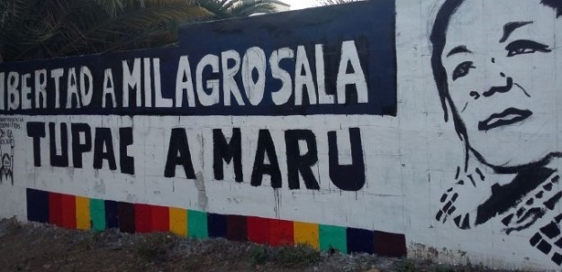 La leyenda del escrito decía "Libertad a Milagro Sala", y fue pintado en la esquina de Alem y José Hernández.