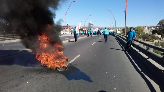 Este miércoles por la mañana trabajadores de la Cooperativa Integral realizaron un corte en el puente Uruguay en el marco del conflicto por el servicio del agua. La medida de fuerza se encuadra en una serie de acciones que determinaron los empleados luego de una asamblea celebrada a las 10 en la sede de la institución. "Los trabajores en asamblea decidimos realizar una serie de acciones en respueta a la determinación del intendente Esteban Avilés. Está en riesgo el trabajo de más de 200 familias y vamos a resistir hasta las últimas consecuencias", manifestó Oscar González, trabajador de la Coopi. González agregó que "las medidas se fuerza continuarán todos los días con diferentes acciones". Acompañaron la protesta representantes de los gremios SIPOS, CTA y FETIA. |