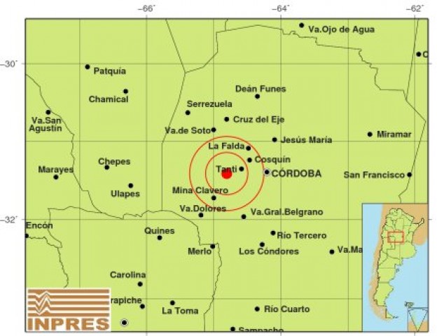El movimiento tuvo lugar a las 17.12 a 58 km al oeste de Córdoba, 253 km al noreste de San Luis y a 23 km al oeste de Tanti.