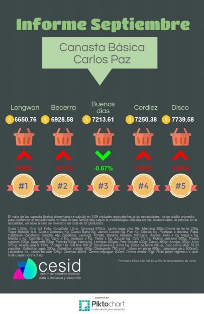 De acuerdo a los índices suministrados por la organización, la inflación fue de 1.57 por ciento, siendo los productos con mayor porcentaje de incremento el calabacín, 47%; zapallitos, 44%; tomate ,30%; crema dental y azúcar, 23%. Por otro lado los productos con mayor descenso fueron: dulce de leche, 24%; lavandina, 19%; cebolla, 16%; jabón en polvo y lechuga, 14%.