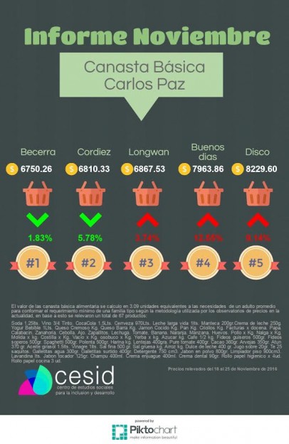 El Centro de Estudios Sociales para la Inclusión y el Desarrollo (CESID) publicó su informe anual de variación de precios de la canasta básica en Villa Carlos Paz.
