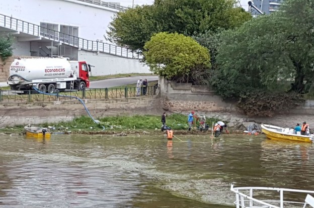 | La Secretaría de Recursos Hídricos, dependiente del Ministerio de Agua, Ambiente y Servicios Públicos, informó que a raíz de lo sucedido en el tramo urbano del río San Antonio en la localidad de Villa Carlos Paz, se encuentran trabajando en la zona implementando distintas técnicas y equipamientos para la eliminación de las algas en las zonas afectadas. Para la extracción de las mismas, se efectúan tres tipos de tareas. La primera consiste en cercar las algas con una malla flotante para luego aproximarlas con botes y lanchas hacia la orilla y succionar con camiones atmosféricos y motos bombas, para su posterior filtrado. La segunda, es trabajar con la cosechadora de algas para separar el agua del material orgánico para luego depositar en un contenedor. Por último, los agentes utilizan redes y mangueras para succionar los restos. Sumado a esto, el intenso caudal que ha ingresado al Lago en las últimas horas permitió aliviar la situación de acumulación de material orgánico superficial en algunos sectores. |