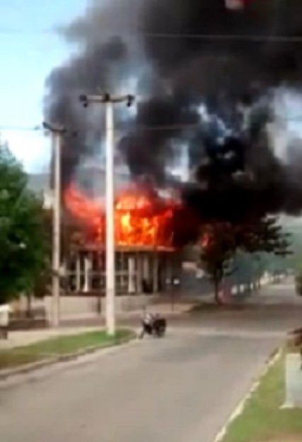 Un voraz incendio se registró en una propiedad en construcción ubicada en Estrada y Vicente López, frente al "Burrito". El siniestro se produjo pasadas las 14 por causas que se investigan. Se especula con un cortocircuito. El foco se desarrolló en el segundo piso de la construcción. Varias dotaciones acudieron al lugar para sofocar el incendio. |
