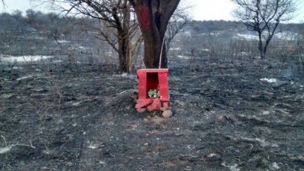 Una imagen milagrosa se pudo percibir en medio del monte arrasado por las llamas. El gauchito gil resultó ileso al paso del fuego.