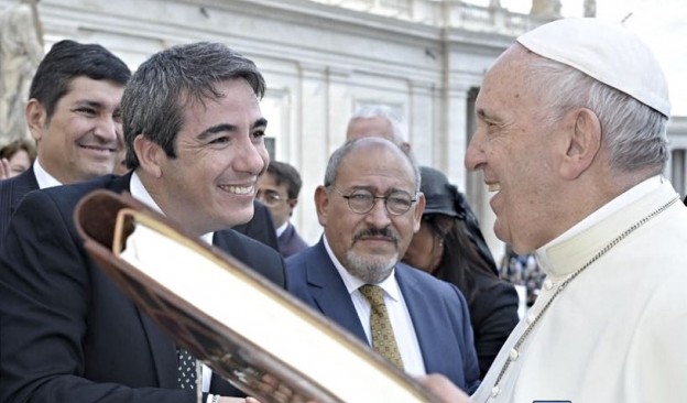 Mandatarios del valle de Punilla visitaron en las últimas horas al Papa Francisco en el Vaticano, en el marco de la Audiencia General que se realiza en la Plaza de San Pedro. Asistieron al encuentro Matías Montoto, intendente de Huerta Grande (foto), Néstor Cuello, jefe comunal de Parque Síquiman y Dardo Zanotti, intendente de Santa María. El Santo padre se dirigió a la multitud llevando adelante una catequesis sobre el sentido del bautismo cristiano e invitando a ser testigos de la Luz como lo es Jesús para la humanidad. Así mismo pidió un esfuerzo a los lideres de las naciones para que La Paz sea posible entre los pueblos dijo "la guerra produce guerra la violencia genera más violencia" |