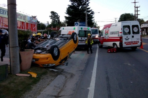 | Un taxi de la ciudad de Córdoba colisionó contra una camioneta en boulevard Sarmiento (a metros del Cucú) y volcó a la altura de la calle Rodin. Milagrosamente no hubo personas heridas. El episodio tuvo lugar este domingo alrededor de 18. El siniestro involucró un taxi de la ciudad de Córdoba (Chevrolet Prisma) y una camioneta Chevrolet Tracker. A bordo del rodado menor se conducía un matrimonio mayor que debió ser asistido para salir del vehículo, mientras que los ocupantes de la camioneta no sufrieron heridas. En el lugar, trabajó personal del escuadrón motorizado de la Policía de Córdoba, bomberos y Seguridad Urbana. |