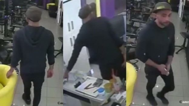 | Un hombre fue grabado por las cámaras de seguridad de una peluquería de Carlos Paz cuando supuestamente robaba un celular que se encontraba sobre un escritorio. El hecho sucedió el sábado pasado en el local "Goyeneche´s", ubicado en la calle San Lorenzo y el damnificado radicó una denuncia policial. El propietario de la peluquería, Raúl Goyeneche, difundió las imágenes a través de su cuenta de Facebook y dijo que el joven sería un conocido limpiavidrios que suele trabajar en el sector. |