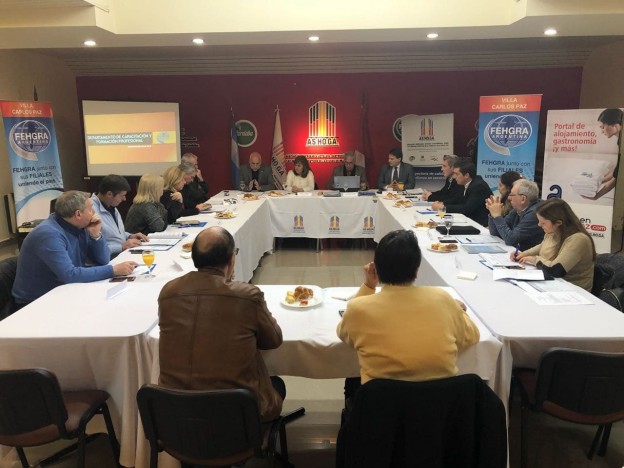 Encabezado por la presidente de FEHGRA, Graciela Fresno; el responsable del Departamento de Relación con Filiales Marcelo Barsuglia, el coordinador FEHGRA Región Centro Alejandro Moroni y el presidente de ASHOGA Rodrigo Serna; en la jornada de este martes las filiales cordobesas participaron de la Reunión Regional que organiza la Federación Hotelera y Gastronómica de la República Argentina. La convocatoria sumó al presidente de la Agencia Córdoba Turismo, Julio Bañuelos, quien dio inicio al acto de apertura con un discurso orientado a destacar las acciones de gobierno emprendidas en materia de obra pública, promoción y capacitación. "Es un plan de obra de 5700 millones de dólares que está en marcha en la Provincia, y como mínimo el 50 por ciento de esa inversión está impactando directamente en los valles turísticos de Córdoba", expresó Bañuelos. Por su parte, y en una breve conferencia de prensa, Fresno afirmó que el comercio informal es un tema "de difícil resolución". En este sentido mencionó que "FEHGRA viene trabajando en la firma de distintos convenios con casi todas las provincias, convenios de colaboración para que, a su vez, se derramen en los distintos municipios, y se genere la legislación que hace falta regularlos. La normativa que refiere al turismo y la actividad hotelera es local, por eso la firma de los acuerdos. Tratando de concientizar que las nuevas modalidades de alojamiento son bienvenidas para nuestro sector siempre y en la medida en que ingresen a un circuito formal de comercialización".
