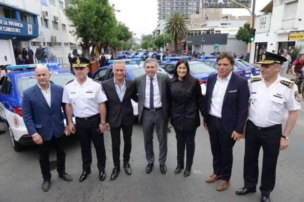 | Con la presencia del ministro de Gobierno de la Provincia de Córdoba, Juan Carlos Massei; el secretario de Seguridad de la Provincia, Alfonso Mosquera; el intendente Esteban Avilés, el secretario de Coordinación de Gabinete del Municipio, Daniel Gómez Gesteira; y autoridades provinciales y municipales, esta mañana se realizó el acto de entrega de 10 nuevos vehículos y 5 motos destinados a la Unidad Regional Departamental Punilla de la Policía de Córdoba. En este sentido, Massei comentó: "Muy contento de seguir con el Plan Integral de Seguridad Ciudadana y Prevención del Delito, entregando 428 vehículos en este año 2018, y sumando 1500 entregados en total en dos años y 10 meses de gestión. En el marco de este plan el Municipio de Carlos Paz ha trabajado muy bien mancomunadamente con la Policía a través de su Seguridad Urbana, y antes del comienzo de la temporada vamos a entregar 5 nuevos móviles y 2 motos más para el Municipio y continuar así trabajando en conjunto". Por su parte, Avilés sostuvo: "Quiero destacar la estrategia del gobernador Schiaretti, ya que Juan Carlos Massei ha sido muy claro en cómo se está trabajando. Extender en toda la provincia de Córdoba el mismo nivel de equipamiento, cada vez más moderno y con recursos humanos, como en el caso de la Departamental Punilla y específicamente en Carlos Paz, muestra que se mira con inteligencia lo que pasa en el mapa de seguridad de la provincia. La tarea se realiza también en conjunto con el gobierno nacional, complementándose, y coordinando los recursos de los municipios para que sean más eficientes, mostrando un concepto integral de seguridad que nos favorece a todos los vecinos de Punilla". |