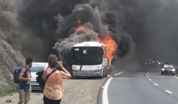 | Un colectivo de la empresa Transporte La Calera fue devorado por las llamas esta tarde en inmediaciones del dique San Roque. Los pasajeros lograron salir por sus propios medios y comenzaron a correr, mientras el rodado fue alcanzado por el fuego. El interno quedó destruido y trascendió que se encontraba lleno en momentos en que, por causas que se investigan, se desató el siniestro que arrasó con el interior del colectivo. Según pudo conocerse, se trasladaba hacia la ciudad de Córdoba y fueron los pasajeros quienes dieron a conocer la noticia y llevaron tranquilidad a sus familiares. |