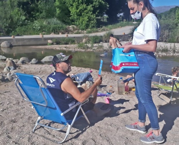 | La Agencia Córdoba Turismo dispuso para esta temporada la implementación de equipos de asistencia al turista que ya están trabajando de manera simultánea en los valles y zonas turísticas de la provincia, en el marco del programa «Córdoba te ama a vos». El personal asesora al visitante, entrega kits sanitarios (contienen barbijo y sanitizante) y refuerza el mensaje de prevención del Covid-19, a través del mantenimiento de distancia social, uso de cubre boca e higiene de manos. El programa contempló además la puesta en marcha de un desarrollo tecnológico que permite acceder desde el celular, a través de un código QR, a la web de Córdoba Turismo. Así, los visitantes pueden conocer la oferta turística de la provincia, reemplazando el uso de papel por medios digitales y de esta forma contribuyendo al medio ambiente. |