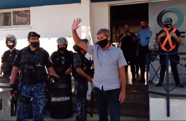 Finalmente liberaron a Gustavo Vélez, secretario General del SIPOS, luego de los disturbios de este viernes por la mañana en el palacio municipal. El sindicalista fue detenido e imputado por los destrozos generados en el edificio municipal en medio de la movilización que realizó la Cooperativa Integral. Había quedado alojado en la Comisaría. A su vez, desde la Municipalidad emitieron un comunicado culplando de violentos a los manifestantes: "Este viernes, un grupo de trabajadores de la Coopi liderado por el secretario general del Sipos Gustavo Valdez, llevó adelante una violenta manifestación frente al Palacio 16 de Julio, provocando destrozos en el mobiliario histórico del Municipio", expresaron. |