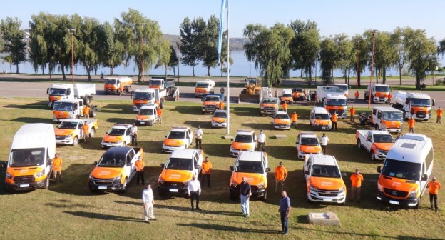 El Intendente Daniel Gómez Gesteira junto al equipo de Gobierno, presentó maquinarias, camiones, utilitarios y furgones que prestarán el Servicio Municipal de Agua Potable, y que se sumarán a la flota de vehículos municipales que cuenta con más de 150 unidades; con una inversión de más de 100 millones de pesos de fondos propios. Cabe recordar que, a raíz del fallo de la Corte Suprema de Justicia, el servicio de agua será reasumido por los vecinos, garantizando también el cumplimiento de los derechos de los trabajadores del servicio de agua que trabajaban para la empresa prestataria. En esta oportunidad, el equipamiento incluye retroexcavadoras, martillo hidráulico, minicargador y martillo hidráulico retroexcavador, utilitarios con cabina simple y/o cabina doble, camiones frontales livianos de doble cabina, furgón medio, camión de cisterna, y camión volcador, junto con tractor compactador. "El agua vuelve a los carlospacenses. Hemos reforzado nuestra flota, sumando nuevos vehículos, lo que significa inversión, infraestructura y recursos humanos que fortalecen los servicios públicos en su totalidad, al que se suma el servicio municipal de agua potable. Estamos preparados técnicamente para brindar el servicio con mejor calidad y a un precio justo para los vecinos", afirmó el Intendente Daniel Gómez Gesteira. |