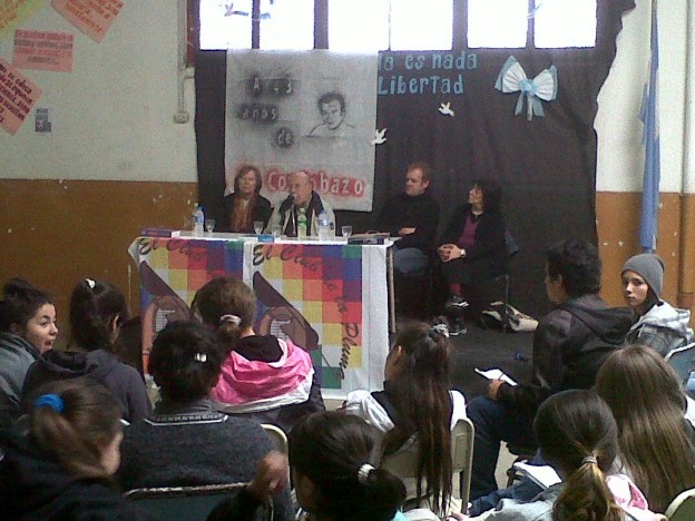 Con motivo del 43º aniversario de "El Cordobazo", la escuela Carande Carro organizó una charla debate con Héctor Tosco, Hijo de Agustín, el trabajador más representantivo del movimiento popular que se produjo en 1969. Héctor se mostró muy expresivo a la hora de manifestar sus sentimientos por la fecha que se conmemora y respondió todas la preguntas de los alumnos junto a otros trabajadores que lo acompañaron y que fueron, junto a su padre, partícipes de la histórica protesta. "Estoy orgulloso de poner en contacto la historia de mi padre con las nuevas generaciones", sostuvo Tosco en un pasaje de su introducción. El encuentro estuvo organizado por la profesora de lengua del establecimiento educativo, Gabriela Fernández. |