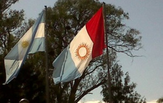 El concejal Adrián Lizarriturri (UpC) y la presidenta del Partido Justicialista de Villa Carlos Paz, Mariana Caserio, hicieron entrega el pasado viernes de una bandera de ceremonias de Córdoba.