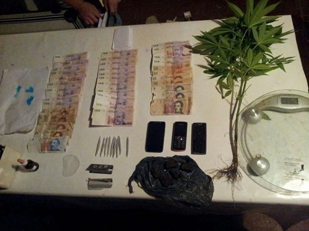 El allanamiento arrojó como resultado la detención de un hombre y una mujer, quienes tenían en su poder 50 gramos de marihuana, 11 cigarrillos de marihuana, 1 gramo de cocaína, una balanza, una planta de canabbis y 1.417 pesos, según detalló el comisario mayor Ariel Requena. El operativo fue ordenado por el fiscal de instrucción nº1, Gustavo Marchetti. |