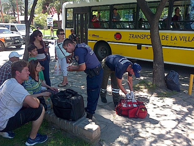 Una mujer resultó herida tras caer de una unidad de Transporte de la Villa y ser atropellada por el mismo colectivo, frente al palacio municipal. La víctima había abordado el ómnibus cuadras atrás y al frenar repentinamente (se cruzó un vehículo) la mujer cayó al asfalto, ya que la puerta del colectivo estaba abierta. En diálogo con carlospazinforma, Luis Oliva, chofer del ómnibus, dijo: "Se me cruzó un vehículo y tuve que frenar. La mujer se cayó, no me dio tiempo a acerrar la puerta. La mujer no alcanzó a sentarse". |