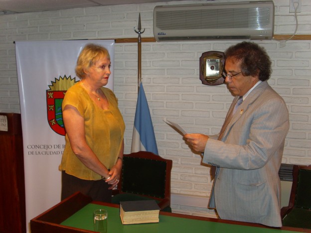Esta mañana se llevó adelante en el recinto legislativo el juramento de Alicia Bergamín como concejal por la UCR. La ex directora de Cultura y Educación del municipio asumió ante la presencia de los parlamentarios y funcionarios del Departamento Ejecutivo. Luego de la asunción, Bergamín se mostró muy emocionada y expresó a carlospazinforma: "Es un doble compromiso. No puedo reemplazar a alguien que hizo una brillante tarea durante años. Trataré de honrar su memoria haciendo lo mejor posible" |
