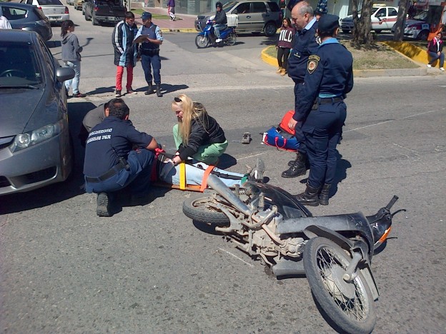 El siniestro se registró alrededor de las 12.30 en la intersección de San Martin y Velazquez. En la oportunidad, una moto Honda Biz habría cruzado un semaforo en rojo, según relataron a carlospazinforma los ocupantes del rodado mayor.