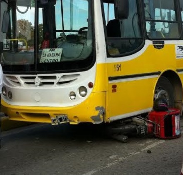 El motociclista terminó debajo del colectivo y sufrió politraumatismos. Fue asistido por personal de AMI y luego trasladado al hospital Gumersindo Sayago.