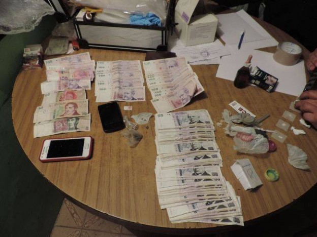 El procedimiento estuvo a cargo del comisario Ariel Requena, quien confirmó el secuestro de bolsas con cocaína (9 gramos), dos gramos de marihuana y 27 semillas de cannabis, celulares y casi 10 mil pesos.