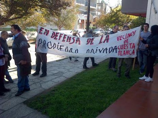 Un nutrido grupo de habitantes de la sureña localidad reclamaron este martes por la mañana que el fiscal Gustavo Marchetti arbitre los medios necesarios para que la Policía pueda actuar para contrarrestar el avance de los "ocupas".