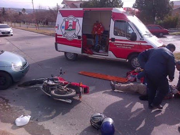 | Un motociclista sufrió heridas luego de protagonizar esta mañana un siniestro vial en la intersección de Gabriela Mistral y Roque Saenz Peña, en barrio La Cuesta. Roberto Mesquida, de 27 años, quien conducía el rodado menor, venía en la misma dirección que el Ford Ka, unos metros más atrás. Según relató la conductora del auto, ella intentó doblar y la moto intentó pasarla. "Yo venía por Roque Sáenz Peña, iba a doblar tranquilamente. él me quiso pasar y chocamos. Yo puse el guiño y quise doblar por Gabriela Mistral. Lo único que me preocupó fue él, porque estaba tirado en el suelo. Yo no sufrí ninguna herida, el auto apenas un golpe. No se si la moto venía a alta velocidad, yo venía despacio, tranquila", manifestó a carlospazinforma Eulalia, la conductora del Ford Ka. |