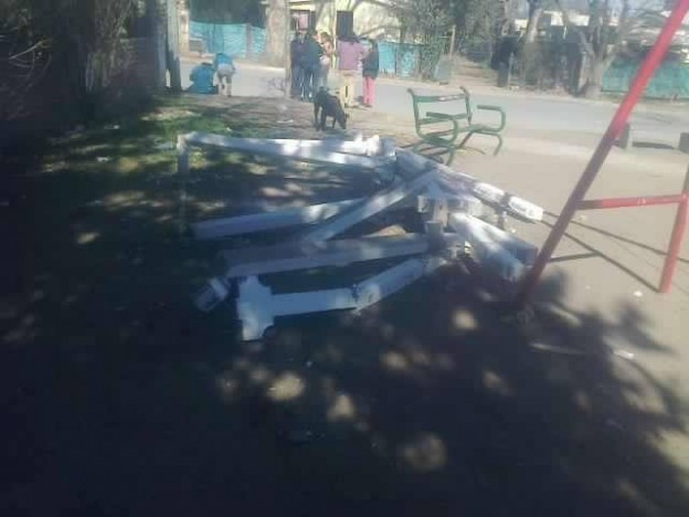 Vecinos de Villa del Río denunciaron hechos de vandalismo en la plaza del barrio. Malvivientes destrozaron juegos para niños y, el sábado por la noche, la pérgola del lugar, que fue realizada por el centro vecinal. La indignación de los habitantes quedó de manifestó a través de las redes sociales.