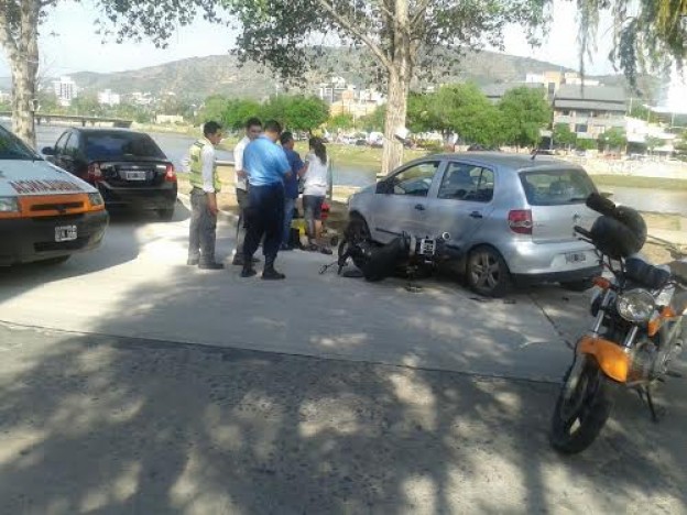 Los vehículos involucrados fueron una motocicleta Motomel 110cc y un VW Fox. Las personas ocupantes del rodado menor fueron trasladadas al hospital Gumersindo Sayago.