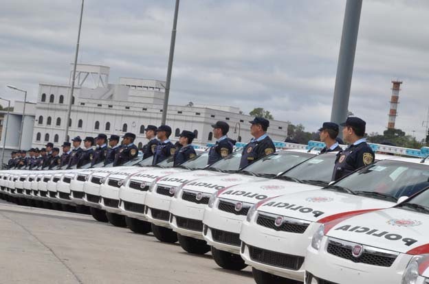 | En el marco de las acciones de renovación e incorporación de nuevo equipamiento para dar mayor operatividad a las tareas de la Policía de Córdoba, el Gobierno de la Provincia entregó esta mañana 45 patrulleros marca Fiat Siena 1.4 nafteros, 1.500 pistolas Bersa calibre 9 milímetros con sistema doble acción y 600 Equipos AVL de Localización Automática de Vehículos. "Estamos haciendo reuniones en todos los departamentos de la provincia con policías e intendentes, jefes comunales e instituciones, para realizar una correcta distribución de un total de 400 móviles que vamos a entregar", dijo el ministro de Gobierno y Seguridad, Walter Saieg. Además de la presentación de las flamantes unidades cero kilómetro, también se otorgaron elementos para el personal del Cuerpo de Motociclistas de la policía, entre los que se cuentan 800 cascos de color blanco (abiertos, de termoplástico con 6 puntos de ventilación), 400 botas de caña alta hidrófugas, 400 camperas y 400 pantalones negros, prendas que fueron confeccionadas con protección y tela térmica antidesgarro con material refractivo, lo que suma un total que alcanza los 20 millones de pesos. Durante el acto llevado a cabo en la explanada del Centro Cívico, el funcionario confirmó asimismo la adquisición y equipamiento próximos a distribuir, entre los que detalló 135 Renault Clio, 30 Renault Fluence (destinados a Policía Caminera), 115 Fiat Siena, 110 camionetas Volkswagen Amarok 5 y 130 motos, inversión total que alcanza los 111.779.203 pesos, entre rodados y material en general. Saieg recalcó además que los vehículos fueron adquiridos por el Gobierno provincial directamente de fábrica con el objeto de dar apoyo y cuidar los puestos de trabajo de la industria cordobesa. También estuvieron presentes en el acto, el ministro de Comunicación y Desarrollo Estratégico, Jorge Lawson; el secretario de Seguridad Matías Pueyrredón, el Jefe de Policía, comisario General Julio César Suárez; el Subjefe y demás miembros del Estado Mayor policial Bono de fin de año Antes finalizar la presentación del material y los rodados destinados a los uniformados, el ministro recordó que "por expreso pedido del Gobernador y como respuesta al proceso inflacionario que vive el país, y tal como lo recibirán los empleados públicos, todos los policías van a percibir un bono extraordinario de 1.500 pesos para activos y de 750 pesos para el personal retirado de la fuerza". |