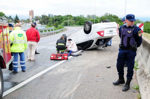 Una mujer de 25 años sufrió un impresionante accidente en el ingreso a Villa Carlos Paz. El siniestro se registró este jueves por la mañana. En la ocasión, la abogada, que se dirigía al centro de la ciudad, perdió el control del Ford Focus y colisionó contra un muro, terminando el vehículo dado vuelta. La mujer sufrió heridas y fue trasladada al hospital Gumersindo Sayago. Trabajaron en el lugar personal de AMI, Bomberos, Policía y Seguridad Urbana. |