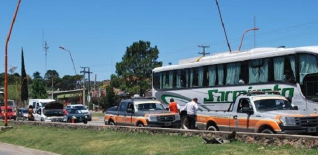 Cuatro vehículos colisionaron en cadena este mediodía en avenida San Martín en plena congestión por el ingreso masivo de automóviles a la ciudad. Los vehículos involucrados fueron un Renault Sandero, un Renault Clio, un Fiat Strada y un Honda. Según testigos, uno de los conductores frenó y los otros rodados comenzaron a colisionar en cadena. Hubo dos personas heridas que fueron trasladadas al hospital Gumersindo Sayago. Se trata de una mujer embarazada y su pequeño hijo, quienes están fuera de peligro. Trabajaron en el lugar personal de Bomberos, Seguridad Urbana, Policía y AMI. |