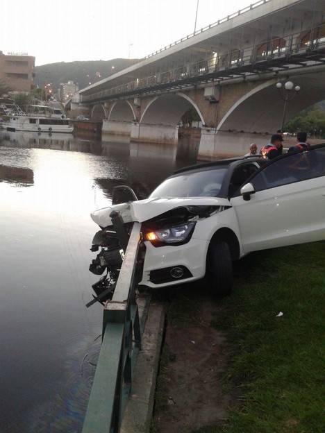 Un impactante accidente se registró este sábado por la mañana en la Costanera de Carlos Paz, en donde un Audi A1 se estrelló contra la baranda de contención que da al lago San Roque. El siniestro se registró alrededor de las 7 en las inmediaciones del puente Uruguay y el vehículo estuvo a punto de superar la baranda y caer al agua. Dentro del rodado viajaban jóvenes que tuvieron que ser asistidos por personal del cuerpo de bomberos. |