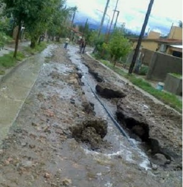 Con motivo de las intensas precipitaciones registradas en las últimas horas, algunas calles del barrio Las 400 Viviendas se abrieron al medio literalmente. Vecinos de este sector enviaron fotos a los medios para informar sobre la situación que se vive en el barrio. Las arterias más perjudicadas por la lluvia fueron las últimas. La mayoría de los habitantes no pudo sacar el vehículo a la calle. Los vecinos están preocupados porque el pronóstico indica la continuidad de precipitaciones. |