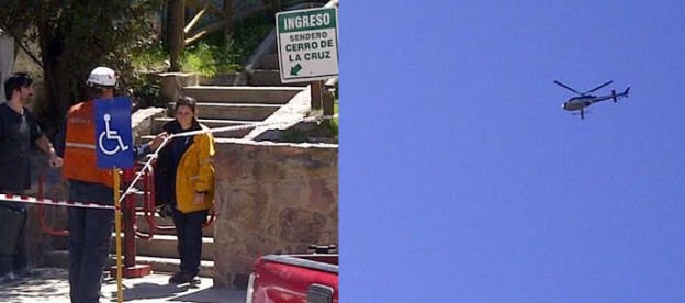 Continúa la búsqueda por cielo y tierra de Andrea Castagna, la mujer de 35 años que desapareció el miércoles por la tarde en el cerro La Cruz. Durante toda la mañana continuó el rastrillaje (participan alrededor de 100 personas) a 2 kilómetros a la redonda del monumento con apoyo del Cuerpo Especial de Policía, perros, bomberos especializados y personal de Defensa Civil. Además, se sumó un helicóptero para tener una visión desde las alturas. Policía Judicial trabaja en el lugar donde se encontró sangre y se esperan novedades. En horas del mediodía se hizo presente el fiscal del Segundo turno, a cargo de Ricardo Mazzuchi, quien no descartó ninguna hipótesis. |